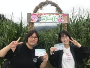 2m以上あるトウモロコシ畑の迷路を各ポイントに設置されているスタンプを押しながらゴールを目指しました!